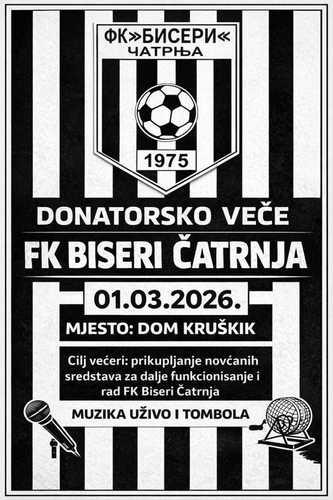 Donatorko veče FK „Biseri“ iz Čatrnje biće održano u nedjelju, 1. marta, u domu u Kruškiku.