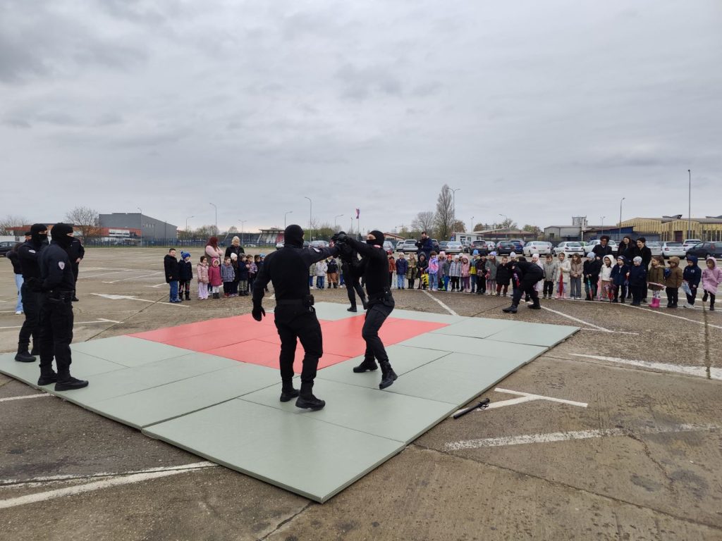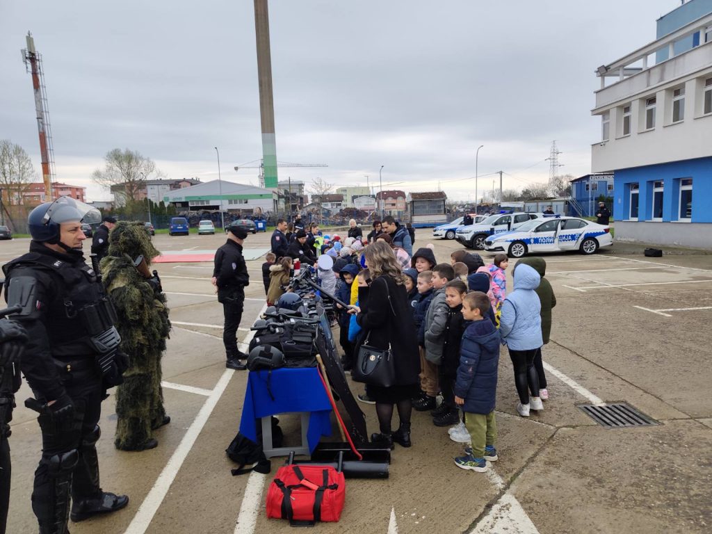Djeca su imala priliku da vide materijalno-tehnička sredstva koja policija koristi u svojim aktivnostima i pokaznu vježbu pripadnika Jedinice žandarmerije.