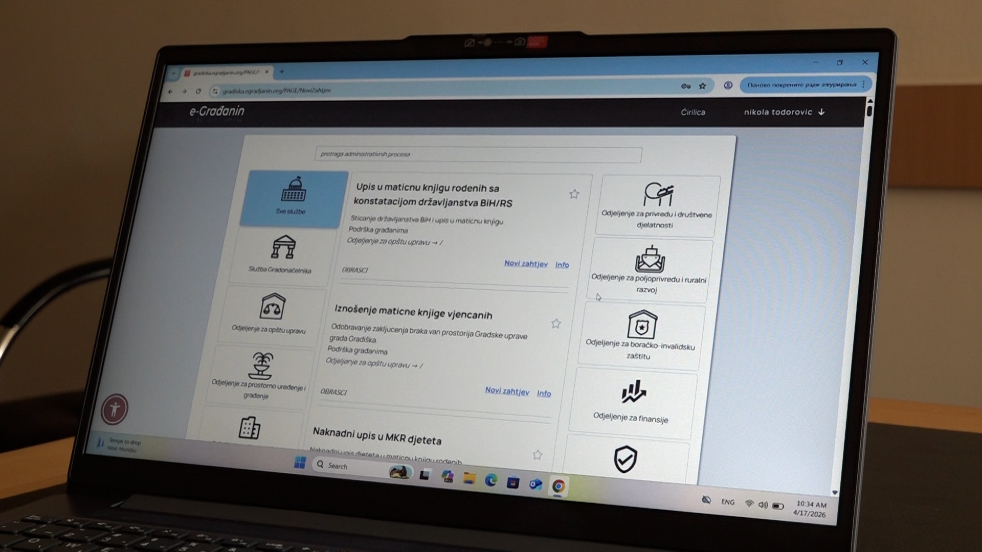 stranici Grada Gradiška pokrenu e-Upravu ili da se direktno sa linka https://gradiska.egradjanin.org/ prijave, prate upute i podnesu neki od zahtjeva koji se tiču ostvarivanja određenih prava ili pribavljanja potrebne dokumentacije.