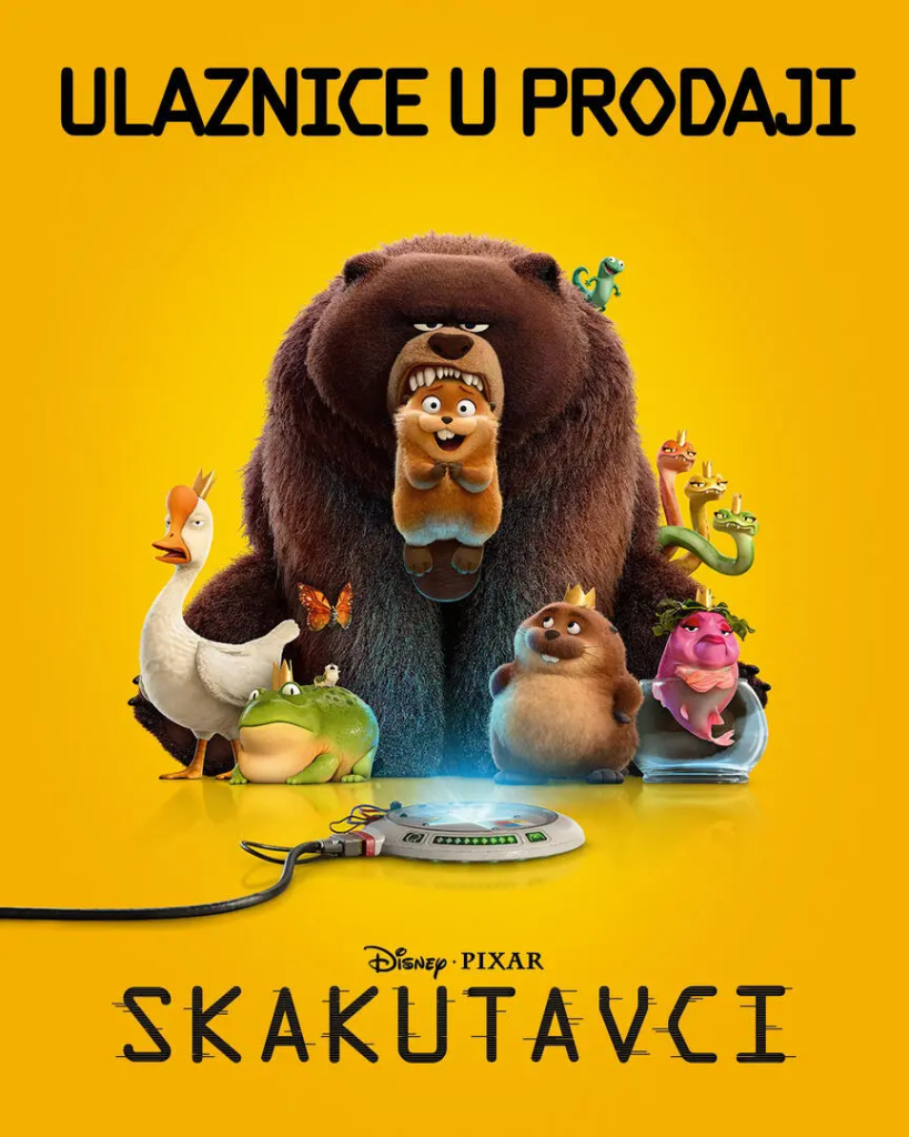 Od 17 časova – “Skakutavci”. Šta kad bi mogli razgovarati sa životinjama — i razumjeti svaki njihov odgovor? U najnovijem animiranom spektaklu naučnici otkrivaju tehnologiju koja omogućava “skok” ljudske svijesti u životinje. Tako ljudi napokon mogu doživjeti svijet očima svojih krznenih, pernatih i ljuskavih prijatelja!  “Skakutavci” su topla, duhovita i vizuelno zadivljujuća priča o povezanosti, razumijevanju i granicama ljudske empatije.