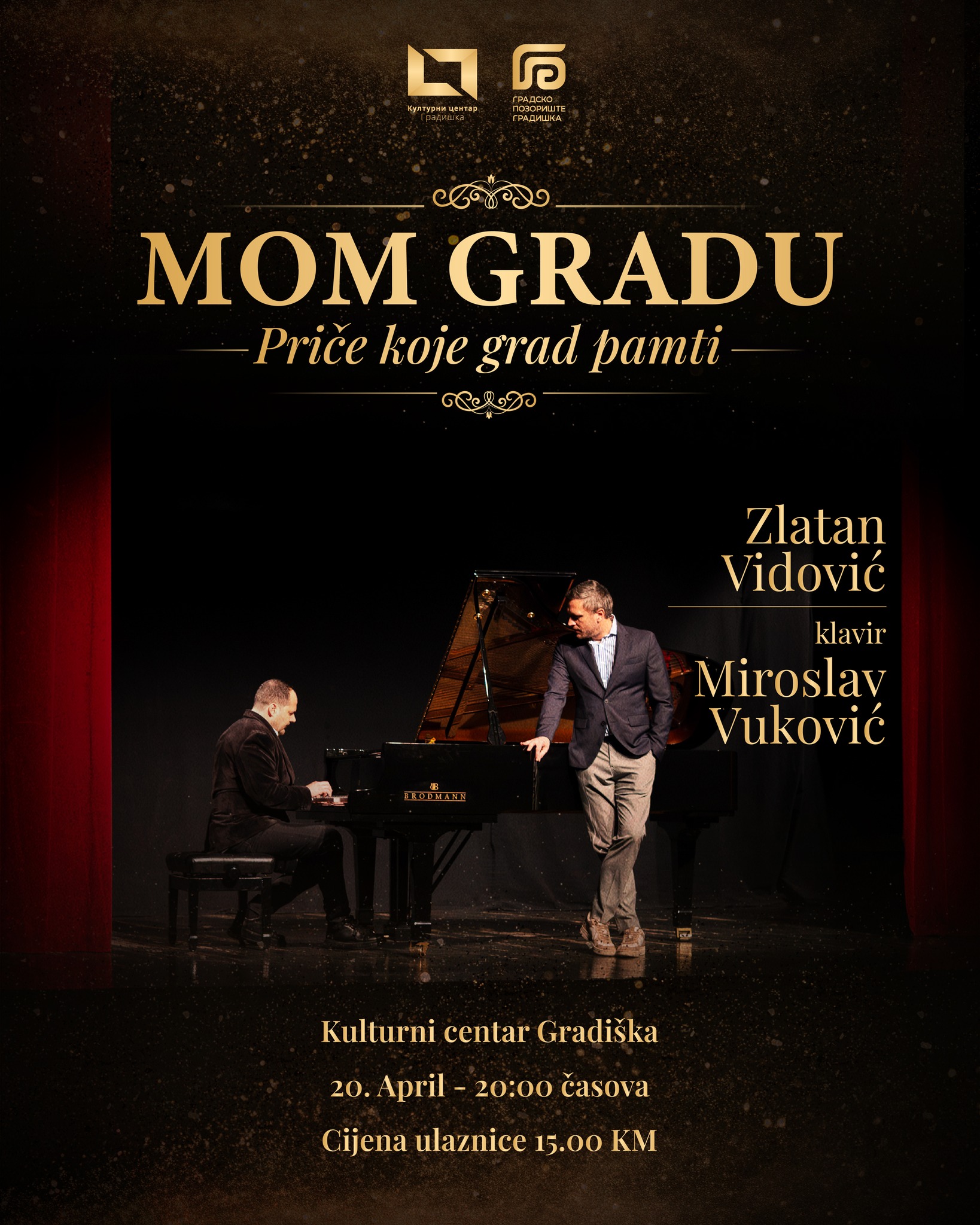 Scensko-muzički program će sadržavati numere i priču o gradu Gradišci, a ideja o zajedničkom projektu i kabareu je dugo planirana, rekli su Zlatan Vidović i Miroslav Vuković, gostujući u jutarnjem programu RTVG-a.