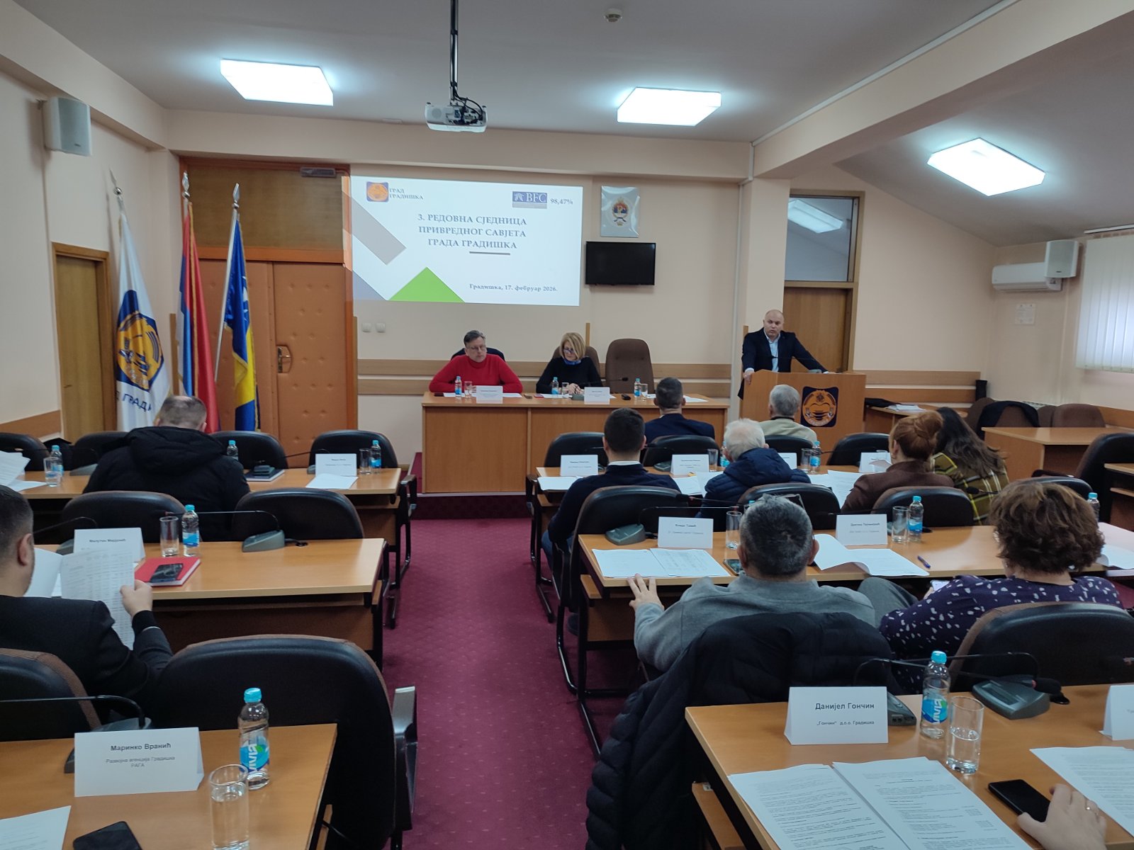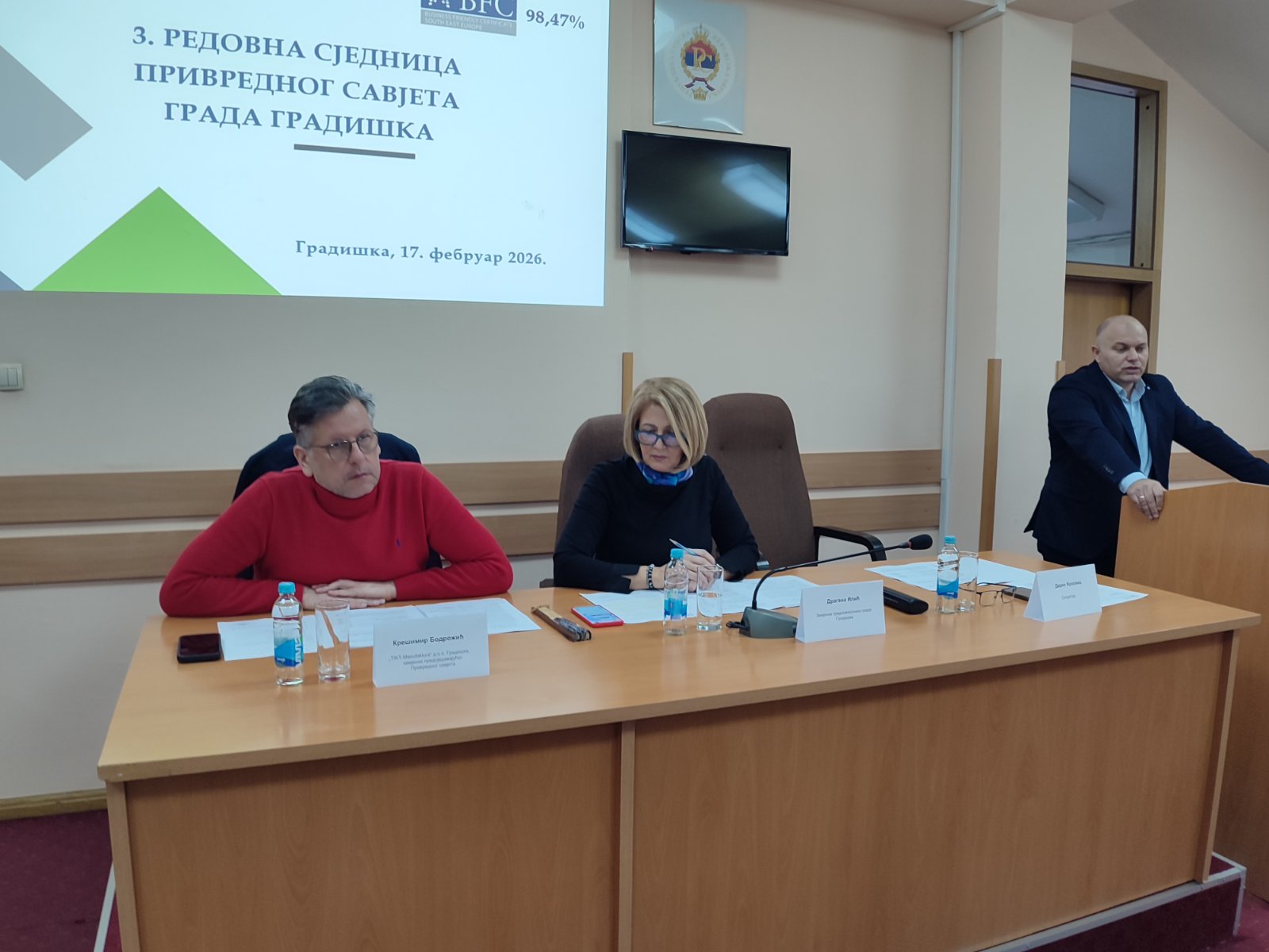 Sjednici Privrednog savjeta Grad Gradiška prisustvovali su: predsjednik Područne privredne komore Banjaluka Stanislav Čađo i šef banjalučke filijale Zavoda za zapošljavanje Republike Srpske Mladen Vrećo.