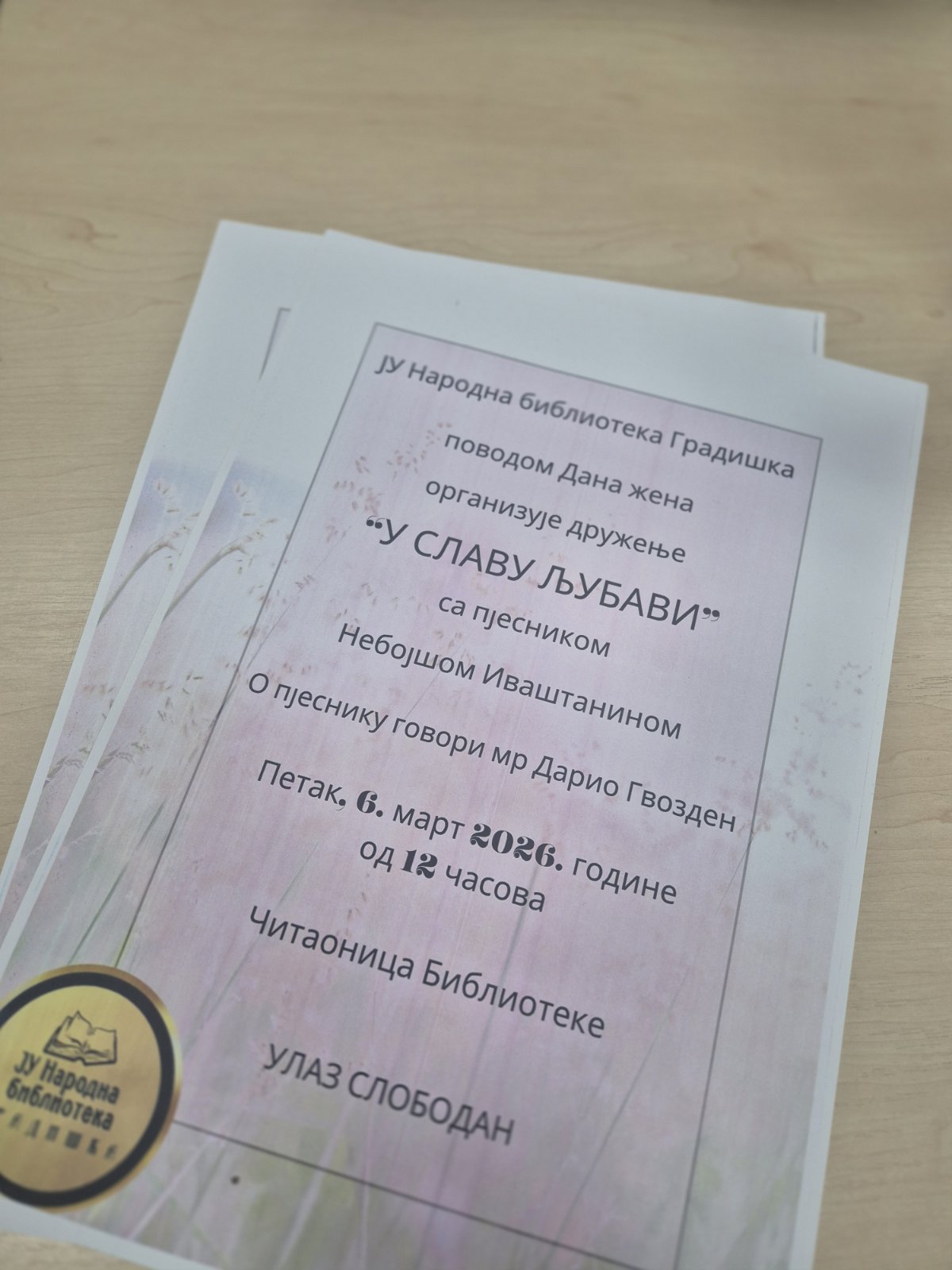 U Narodnoj biblioteci Gradiška održano je književno druženje „U slavu ljubavi“, upriličeno povodom Međunarodnog dana žena.