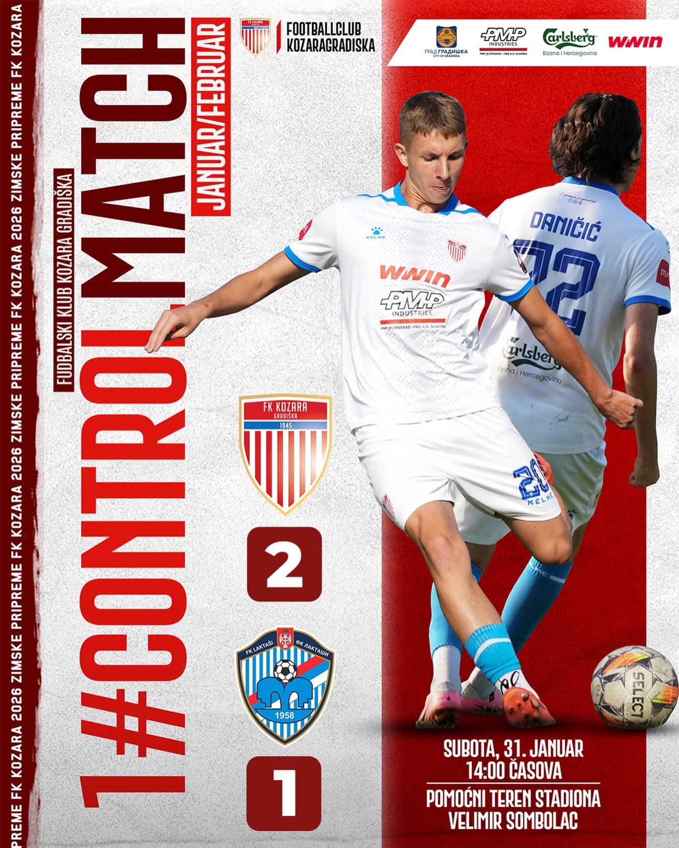 Fudbaleri Kozare u prvoj pripremnoj utakmici pred nastavak sezone u Prvoj ligi Republike Srpske pobijedili su danas ekipu Laktaša rezultatom 2:1.