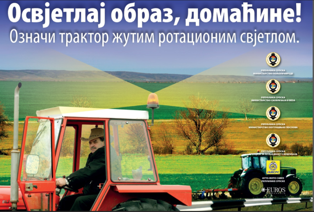 Cilj kampanje je povećanje nivoa bezbjednosti saobraćaja u Republici Srpskoj kroz povećanje bezbjednosti vozača traktora na javnim putevima.