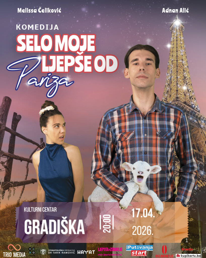 Predstava „Selo moje ljepše od Pariza“ biće odigrana u Kulturnom centru Gradiška 17. aprila u 20 časova.