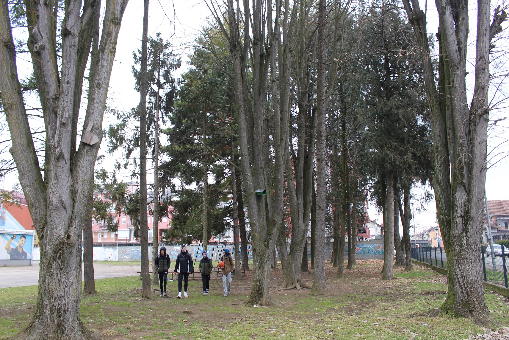 U školskom parku, među najvećim stablima su platani, čija debljina i visina budi znatiželju mališana, učenika i drugih stanovnika Gradiške.
