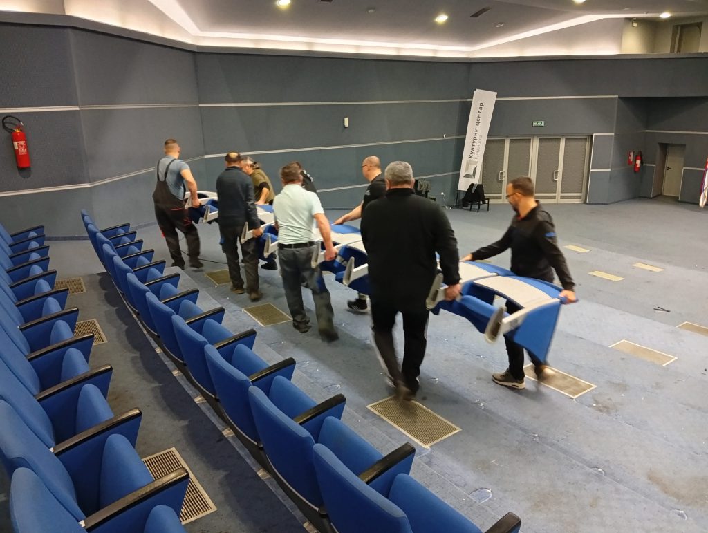 Radovi na rekonstrukciji velike sale Kulturnog centra Gradiška počeli su juče i trajaće narednih desetak dana.