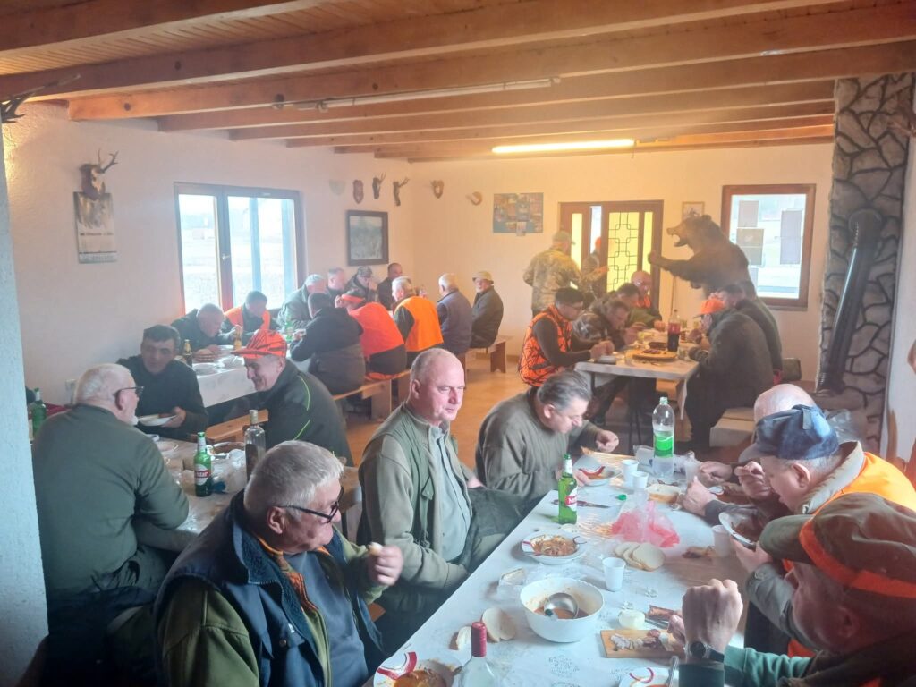 Nakon uspješnog pogona, kako to nalaže stari lovački običaj, druženje je nastavljeno uz lovački ručak i prepričavanje zgoda s terena.