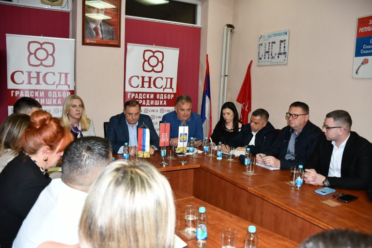 GRADIŠKA – Najviše rukovodstvo Saveza nezavisnih socijaldemokrata (SNSD), predvođeno predsjednikom partije Miloradom Dodikom, održalo je večeras u Gradišci radni sastanak sa predstavnicima Gradskog odbora SNSD Gradiška.