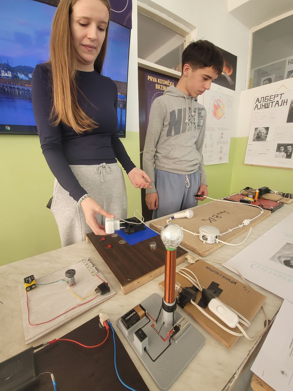 Posjetioci su takođe mogli pogledati hologramsku prezentaciju i video o životu i postignućima Nikole Tesle, što je dodatno obogatilo ovaj zanimljiv i edukativan školski događaj.